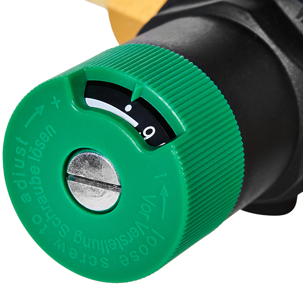 • Простой поворот ручки - это всё, что необходимо для установки выходного давления