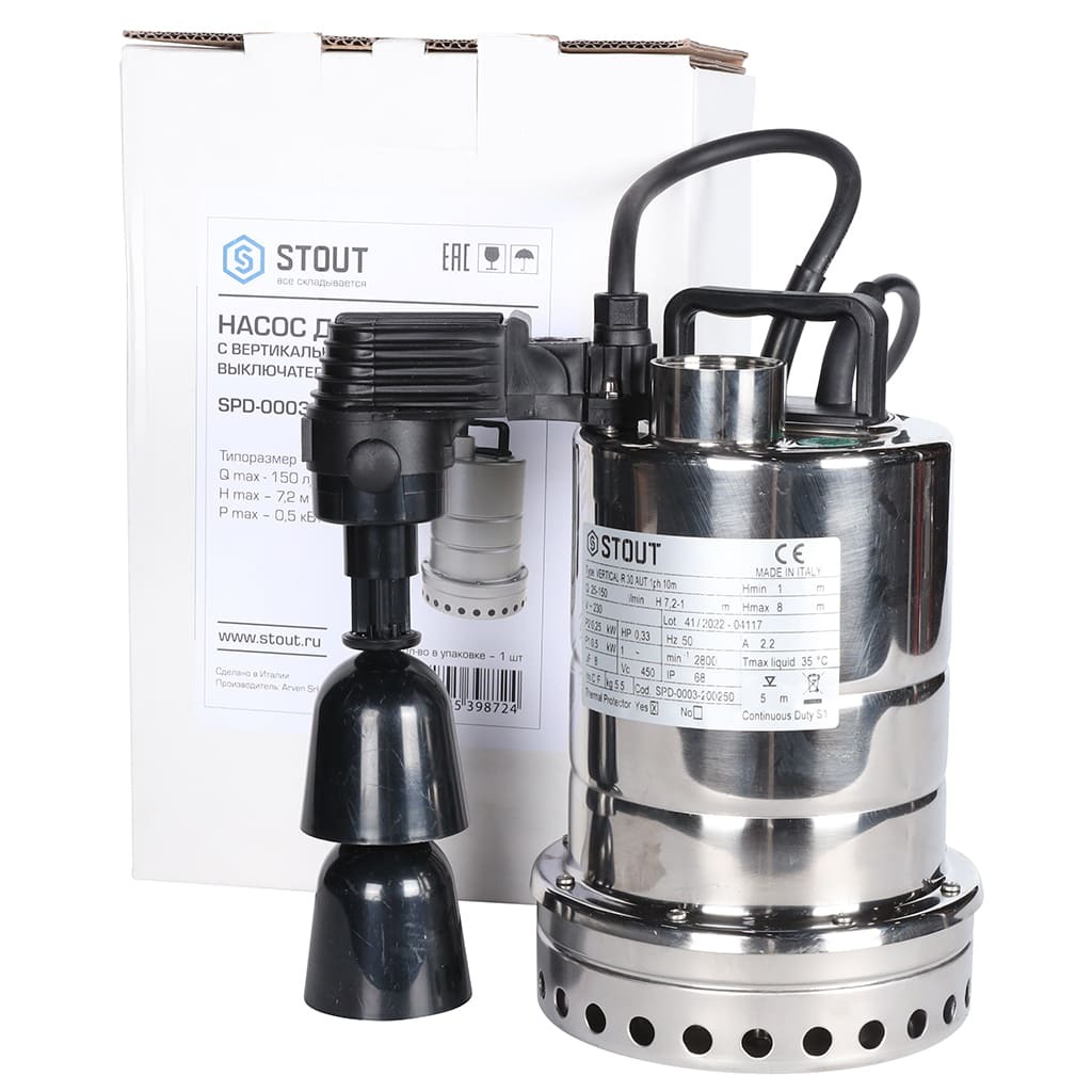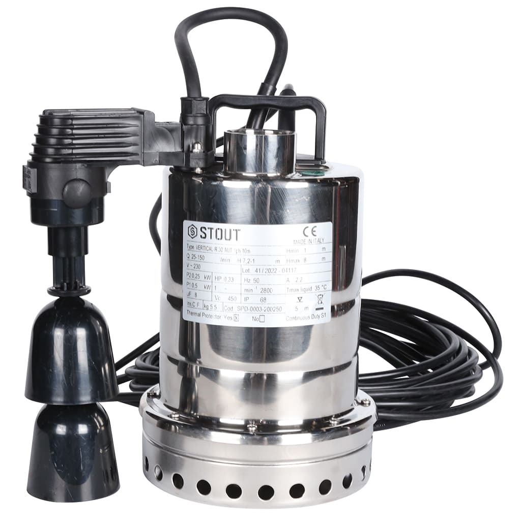 Дренажные насосы STOUT оборудованы встроенным конденсатором с характеристиками, соответствующими мощности встроенного электродвигателя, а в обмотках статора установлена тепловая защита, отключающая электродвигатель при повышении температуры обмоток выше допустимого значения.