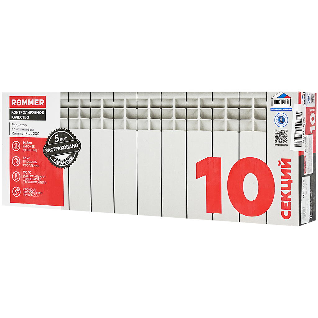 Радиатор отопления ROMMER Plus 200/1000 — эффективное и стильное решение для обогрева вашего дома или офиса. Данный 10-секционный прибор изготовлен из прочного и легкого алюминия, что обеспечивает быстрый и равномерный нагрев помещения. Оптимальные показатели теплоотдачи и высокая скорость обогрева позволяют поддерживать комфортную температуру в комнате. Благодаря боковому подключению и компактным размерам (270х96х1600 мм), радиатор легко устанавливается в любом месте и не занимает много места. Белый глянцевый цвет (RAL9016) делает его универсальным для любого интерьера. Высокая прочность и устойчивость к коррозии гарантирует долгий срок службы этого устройства.