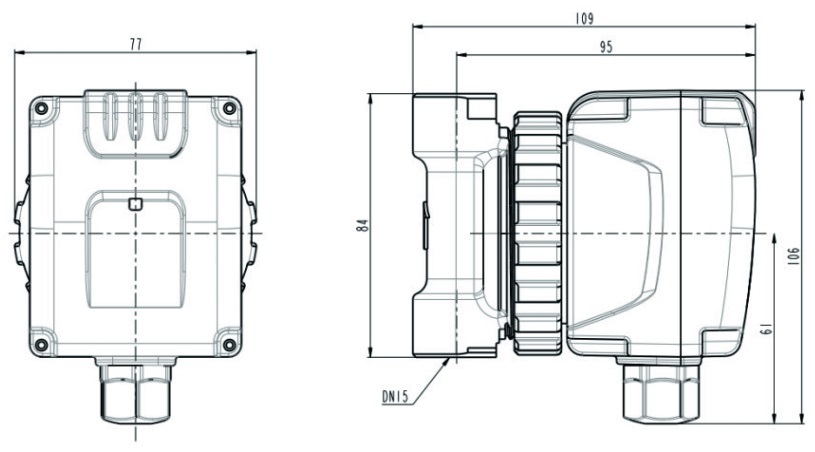 Насосы имеют исполнение «с мокрым ротором» это значит, что детали насоса охлаждаются перекачиваемой жидкостью. Корпус насоса из латуни крепится к блоку статора с блоком управления с помощью накидной гайки. В качестве рабочей среды необходимо использовать очищенную воду, не содержащую нерастворимые механические примеси.